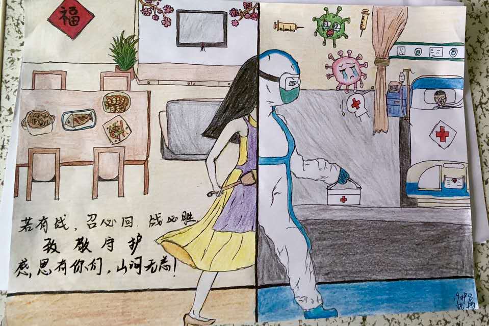 本次活动收到创意作品58份,同学们通过视频、绘画的方式,向心目中最美的“白衣天使”诉衷肠、言感激、表真情。经过评选,共有9份作品脱颖而出,其中一等奖1项,二等奖3项,三等奖5项。