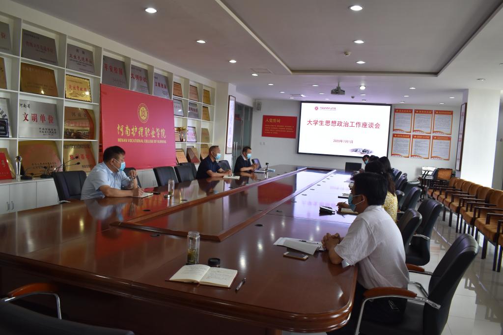 为进一步推进教学改革,深化医教协同,提升高技能人才培养质量,我院创新开展“1+1+1”人才培养模式,针对新的教学模式,如何加强和改进大学生思想政治工作,与会人员畅所欲言,结合自身工作实际发表见解和看法。党委副书记、工会主席胡景团提出要充分挖掘专业课程中育人因素,推进“三全育人”向校外延伸,副院长王家桥提出要结合校外学生学习实际,合理规划教学方案,统筹安排各类课程;学工部和教务处专门针对校外学习学生制定了相应的学生管理规定及课堂管理规定,思政部探索实行新的网络授课模式,各党总支针对校外学生发展党员及党员教育管理工作也提出了建设性意见。