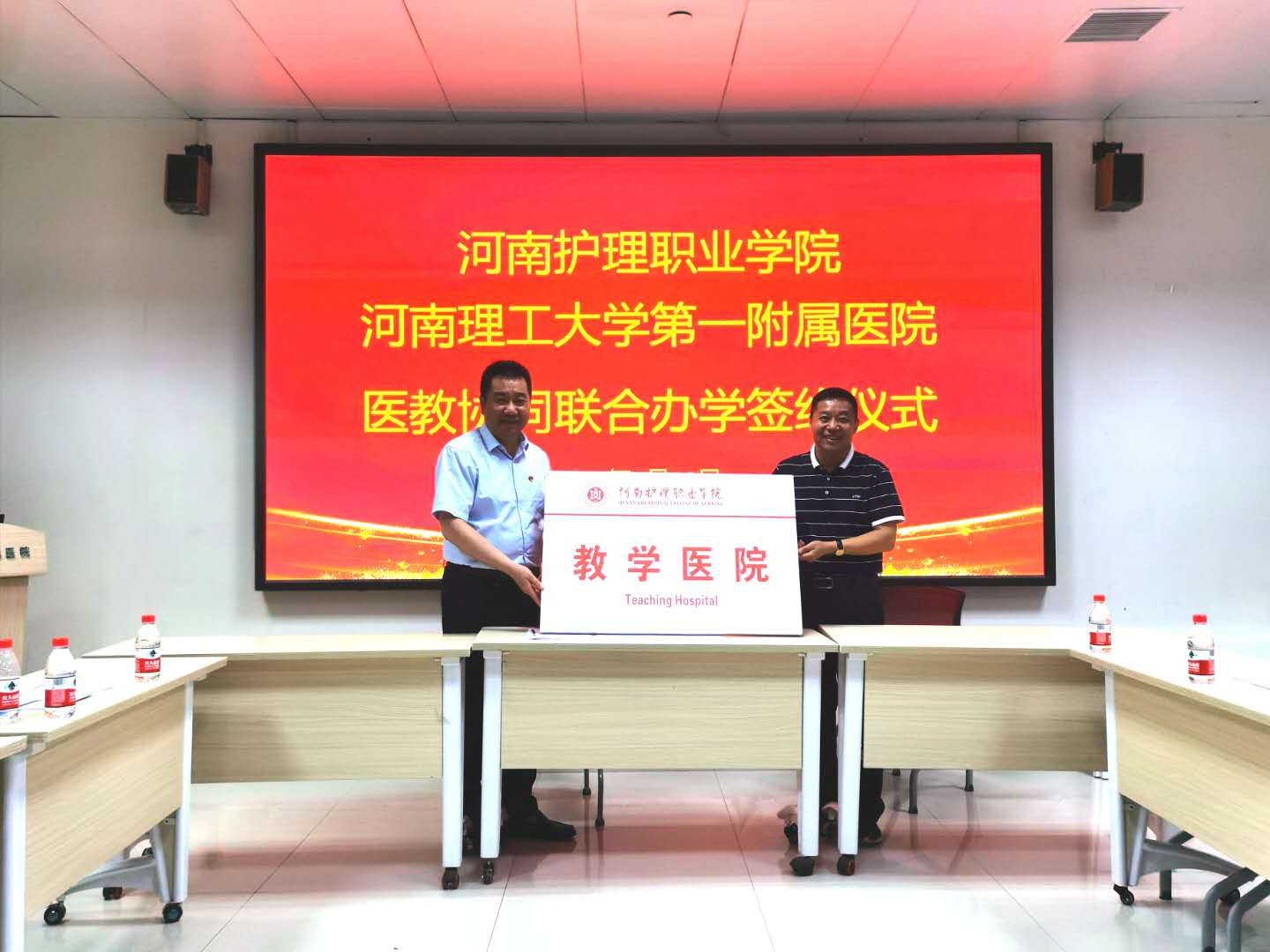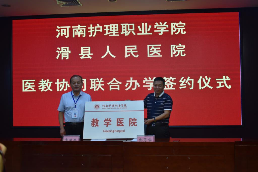 随后,院长郭茂华同各医院代表举行了签约和授牌仪式。至此,我院“医教协同、联合培养”的省内医院已达到8家,标志着我院“1+1+1”联合培养的规模和水平又有了新的提升。为进一步响应国家医教协同和高职扩招政策,今后我院愿同更多优秀医院开展联合培养,共同将医教协同不断深化,培养更多优秀医学人才,为我省经济社会发展和健康中原做出更多贡献。