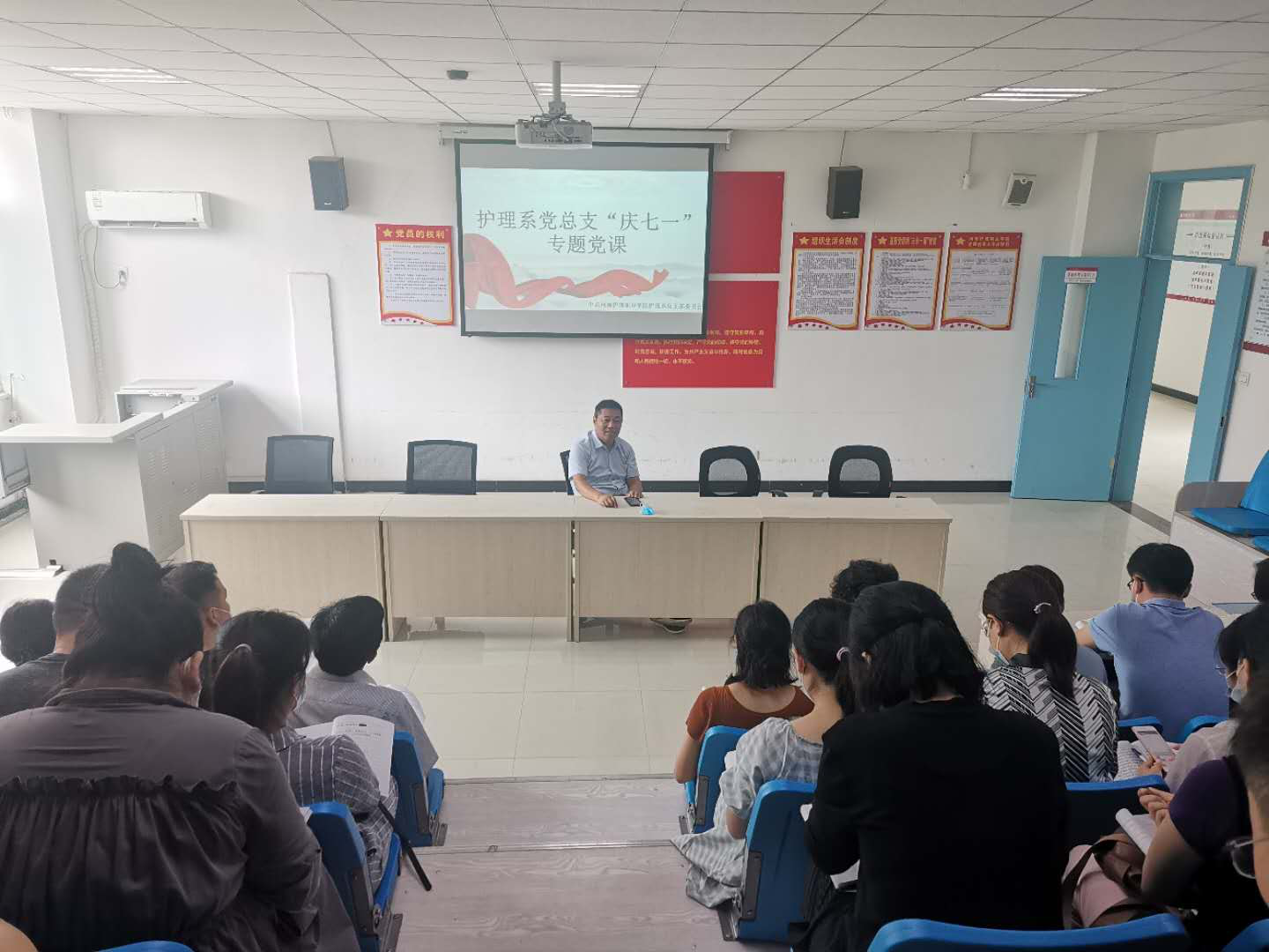 7月3日上午,院长郭茂华应邀为护理系党员讲授中国共产党成立99周年“庆七一”专题党课,并与大家座谈,护理系党总支全体教师党员参加了会议,会议由党总支书记王昆仑主持。