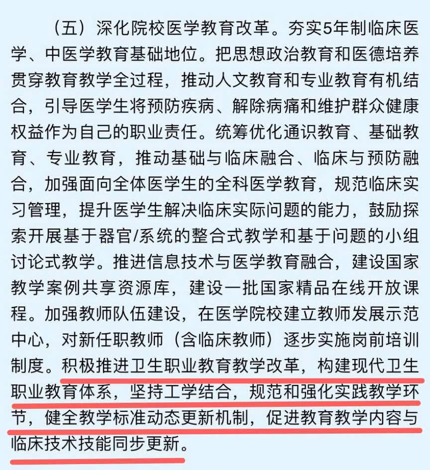 坚持校企合作、产教融合是职业教育发展的必由之路。《国务院办公厅关于深化医教协同进一步推进医学教育改革与发展的意见》(国办发〔2017〕63号)指出:积极推进卫生职业教育教学改革,坚持工学结合,规范和强化实践教学环节,促进教育教学内容与临床技术技能同步更新。