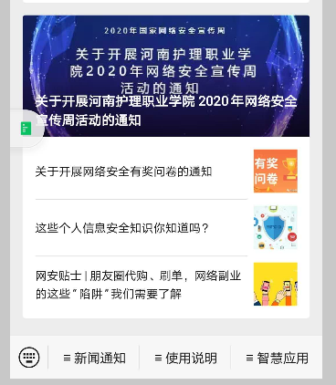 宣传周期间,网站设置“网络安全专栏”,微信公众号进行推送网络安全相关微信。