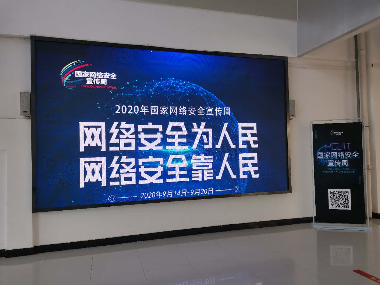 在各楼宇电子显示屏播放网络安全周微视频及标语。
