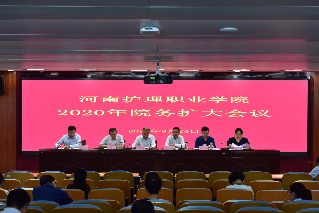会上,郭茂华院长对学院下一步工作提出五点要求。(一)切实做好联合办学各项交接工作。学院开展“1+1+1”人才培养是响应大力创新发展职业教育的有力落实,是提升医教协同培养质量和加速医学教育发展的重要举措。目前,学院与22家教学合作单位开展“1+1+1”联合培养,涉及2019级学生2553人。一是学院上下要高度重视,由副院长王家桥牵头统筹安排,教务处、后勤处、各系密切配合,务必10月9日前将学生有序、统一、安全送到指定联合办学单位。二是要加强联合办学教学和学生管理,6个联合办学工作组由院领导带队,根据定点分工安排,对各联合办学单位每学期至少进行2-3次督导检查,着重解决学生管理和教学存在问题。三是教学管理和学生管理专人要切实负起责任,妥善安排好学生在各教学点的教学和安全管理工作,保证各联合办学单位实现教学“五统一”,即统一教材、统一教学计划、统一教学标准、统一考试、统一实习安排。(二)切实做好2020年新生报到以及扩招工作。疫情防控下的招生和新生报到等是近阶段一项重要工作。一是根据“外防输入、内防反弹”的总体防控策略,进一步落实常态化疫情防控开学要求,由副院长王家桥牵头,学生处、各系负责,尽快制定2020年迎新工作方案,充分体现信息化建设成果,全面做好疫情防控下的新生报到等各项工作。新学期,继续实行错峰下课,分层就餐措施,压实责任,保证疫情防控常态化管理。二是由副院长钟会亮牵头,扎实做好与安阳市联合对农村医学专业进行定向培养工作,做好农村医学专业招生工作。按照上级关于做好2020 年高职扩招专项工作要求,扎实做好2020年二次扩招各项工作。(三)切实做好高水平护理专业群建设工作。学院要坚持落实立德树人根本任务,大力发展高职护理专业教育,加大护理专业人才供给,加快推进教育教学改革进程。一是由院长郭茂华牵头,教务处、护理系、医学技术系负责,成立高水平护理专业群建设领导小组,要深入调研,补齐短板,制定建设方案,稳步推进高水平护理专业群建设。二是以高水平护理专业群建设为抓手,建立护理专业群动态调整机制,做好“三教”改革,即教材改革、教师改革、教法改革,加快高水平公共卫生人才培养体系建设,全面提升学院医学人才培养质量。(四)切实做好学院“十四五”规划编制工作。为促进学院“十四五”期间向更高更优发展,一是由党委书记杜天信牵头,全院通力配合,务实重干、团结一致,把加强顶层设计和坚持群策群力统一起来,积极做好学院“十四五”规划编制工作。二是以学院“十二五”、“十三五”期间发展成果为基础,做好北院区扩建工程建设,提升办学条件硬实力。积极申报预防医学和中医养生保健等专业,形成专业精强、门类齐全、特色鲜明、供需融合的医学专业群协调发展格局。做好学院内涵建设,完善新时代“立德树人”育人体系,提升综合实力,由做大做强向做细做优转变发展,加快推进学院升本步伐。(五)切实做好2020-2021学年绩效考核改革工作。由副院长钟会亮牵头,人事处负责,依据上级有关绩效改革要求,按照“按劳分配、多劳多得”原则,加快推进学院绩效考核改革,有效调动工作积极性,推动工作落实,优化教育教学管理,助推学院各项工作更好发展。
