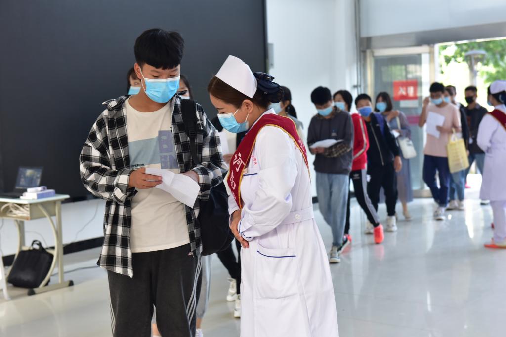 为保证此次考试工作顺利进行,学院对考生及考试工作人员的健康状况进行全面摸排,合理规范考场布置,设置了考场分布图、警戒线、通道及考场指示牌,并提前设置具备防护隔离措施的特殊通道和体温监测设备,做好考场的通风消毒工作,考生需经过查验身份证、笔试准考证、健康码和医务人员测温后,方可有序进入考场。同时,学院在考场外专门安排了医务人员,随时应对疫情防控和突发情况,为考生营造了一个“安全、静心、畅通”的考试环境。