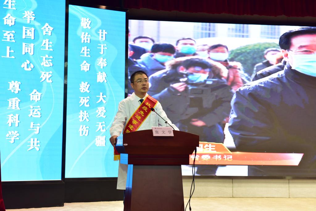 赵圣先在致辞中指出,青年是整个社会力量中最积极、最有生机的力量,国家的希望在青年,民族的未来在青年。此次“抗疫先进典型事迹报告团”走进星空XK体育开展巡讲活动,是深入贯彻落实习近平总书记关于抗击新冠肺炎疫情一系列重要讲话精神的具体体现,也是弘扬伟大的抗疫精神,持续深化“不忘初心、牢记使命”主题教育常态化的实际举措。他希望广大师生通过报告会能够学有所思、学有所悟、学有所得,唱响学习先进典型、弘扬医者职业精神的主旋律,积极践行社会主义核心价值观,将伟大的抗疫精神转化为自己的理想担当,以实际行动筑牢信仰之基、补足精神之钙、把稳思想之舵,用青春梦想谱写新时代人生华章。