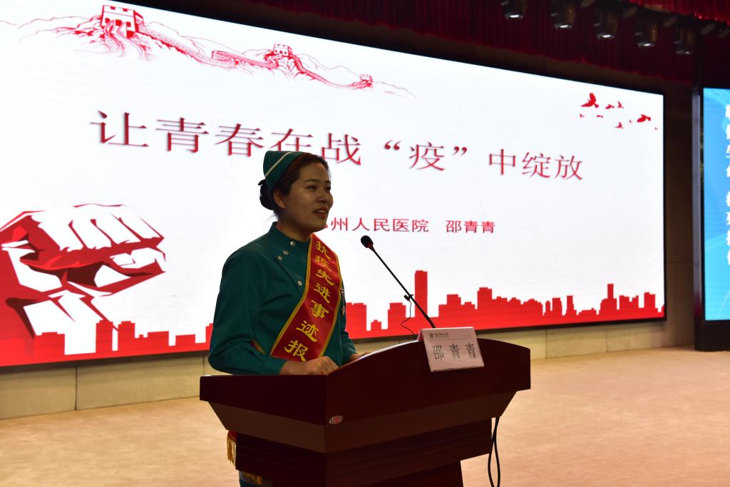 郑州人民医院东院区急诊科护士长邵青青在作报告
