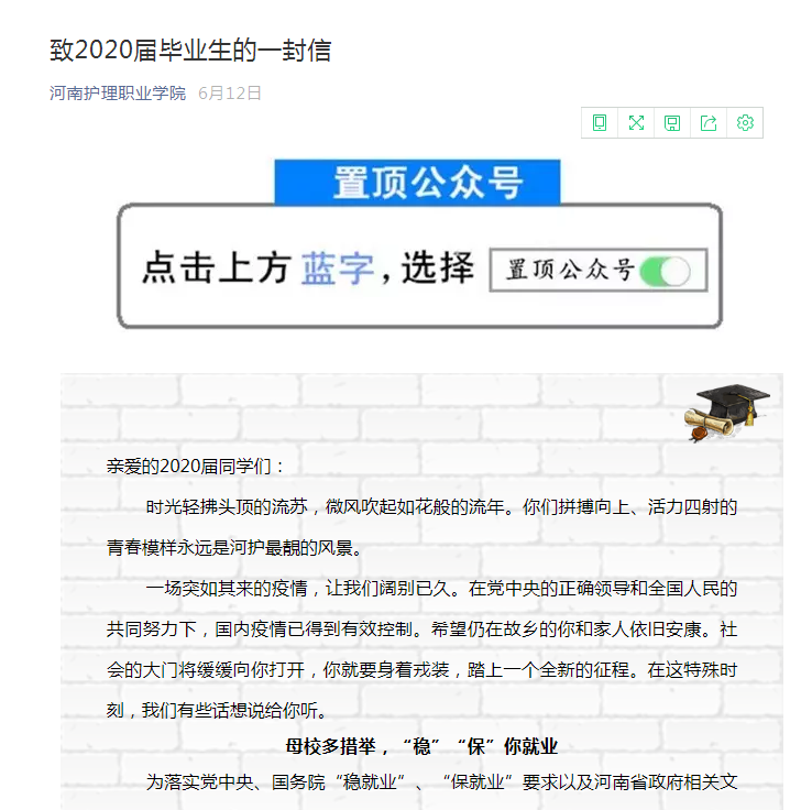 2020年是“十三五”规划的收官之年,也是举国决胜全面建成小康社会、决战脱贫攻坚之年。我院将坚定扛起担当社会责任的重任,认真落实“稳就业”“保就业”的各项举措,助力毕业生多渠道就业,整体提升毕业生就业质量,进一步提升“河南护理”品牌影响力。