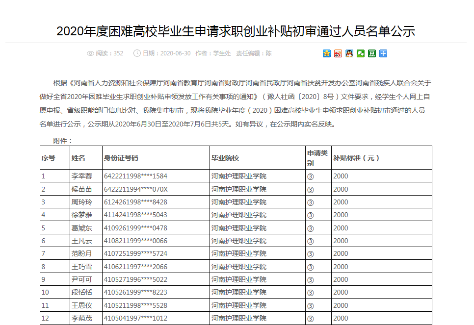 困难家庭毕业生“一个不能少”,落实好就业兜底政策,实现“就业一人,脱贫一家”,是第三个举措。一是及时准确掌握特殊群体就业状况,为建档立卡贫困家庭毕业生、残疾毕业生、少数民族毕业、湖北等重点区域毕业生等群体提供“一对一”的帮扶,有针对性地开展就业岗位推送工作。截至目前,建档立卡毕业生就业率达95.21%,湖北籍毕业生就业率达100%。二是按时间节点做好2020年毕业生就业创业补贴申请与发放工作,做好对毕业生求职过程中的困难帮扶工作。截至目前,我院发放2020届毕业生就业创业补贴共计42人。