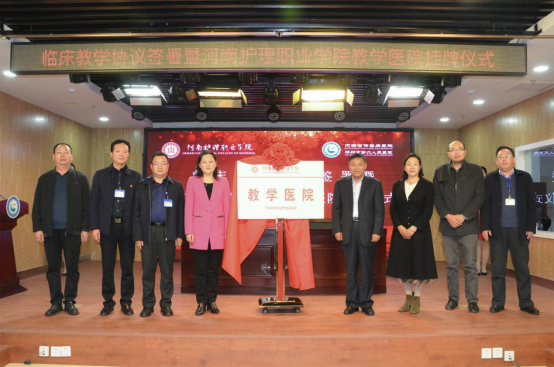 医教协同、医校共建是培养医疗人才、提升医疗技术的重要一环。为扩大学院教学医院规模,增强我院学生的实践经验和综合素质,提高职业适应性和就业质量,11月11日下午,我院与河南省传染病医院(郑州市第六人民医院)临床教学协议签署暨教学医院揭牌仪式在河南省传染病医院多功能厅成功举行。