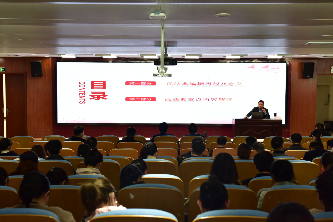 为帮助大家更好学习理解《中华人民共和国民法典》,我院特邀河南省国厚律师事务所李岩律师来院作《中华人民共和国民法典》知识讲座。副院长王家桥出席讲座,副科级以上干部、行管人员、全体专兼职辅导员和无课教师参加讲座。讲座由院办主任孙爱国主持。