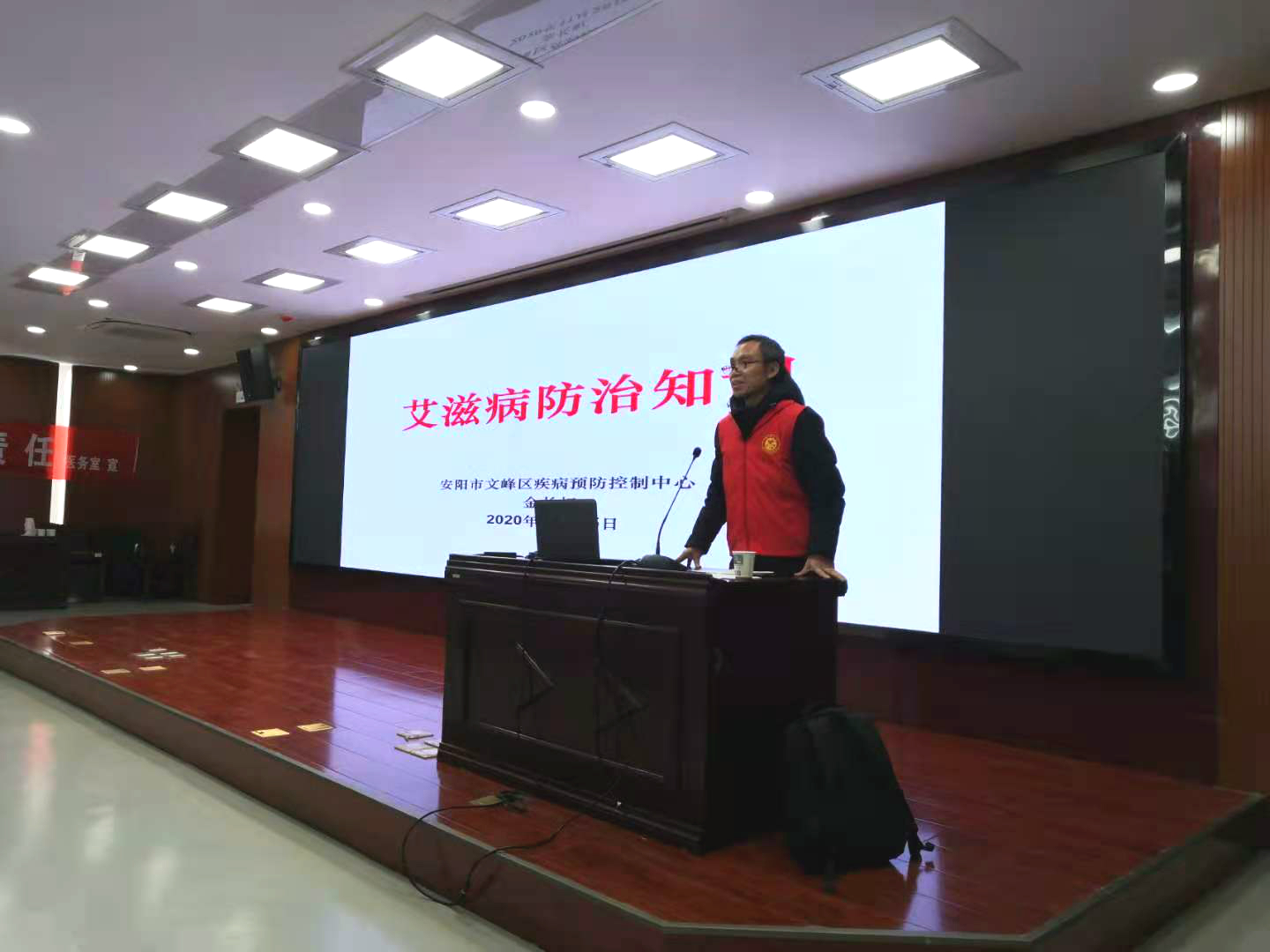 为深入贯彻落实有关艾滋病防控工作的文件精神,在院领导的支持下,医务室和学生处在文峰区疾控中心的协助下开展了一系列的防艾活动,25日下午在我院学术报告厅进行了艾滋病的防控知识讲座,播放了艾滋病有关视频,悬挂宣传条幅、发放宣传彩页、学习手册及宣传小礼品。