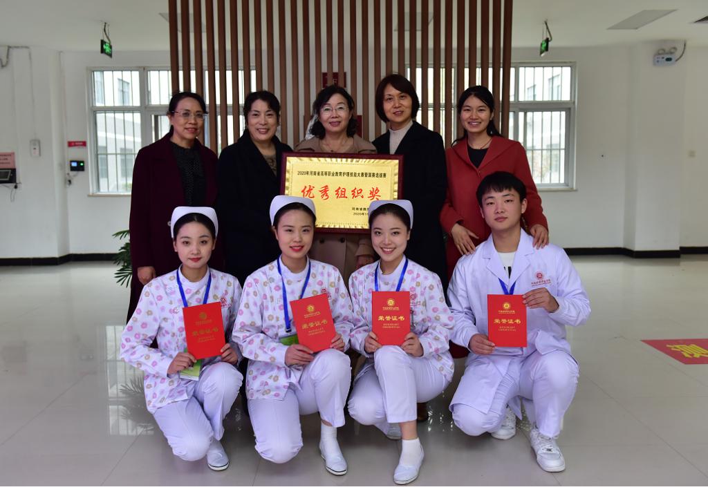 在2020年河南省高等职业教育护理技能大赛暨国赛选拔赛中,我院4名选手谢雨欣、李冰、杨雅涵、应庚辰分别以总成绩第一、第二、第四、第六荣获个人一等奖,指导教师付保芹、吕海琴、王艾青、陈玉芳获优秀指导教师奖;我院荣获优秀组织奖。