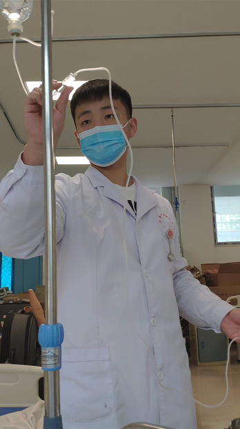 大赛方式新颖,难度大,时间紧,任务重,不仅是对学生们理论知识和操作技能的挑战,也是对他们的心理素质和综合能力的考验。作为指导老师,我们除上课外的其他空余时间里,都会待在实训室里对学生进行指导。应庚辰是我院建校以来第一个参加省级护理技能竞赛的男选手,从刚开始的不被看好,到后来凭借坚定的毅力和扎实的专业素养,从学院竞赛中脱颖而出,在竞赛选手中,他乐观开朗,心态良好,充当着生活中的开心果,在比赛当天,他第一个出战,心态平稳,成绩卓然。