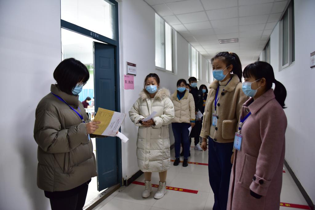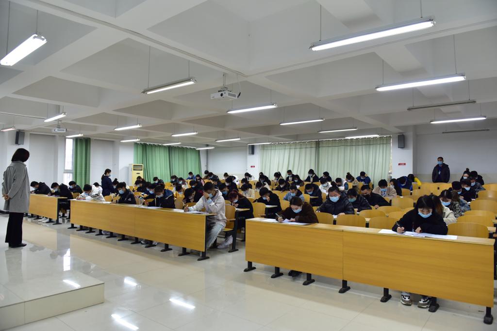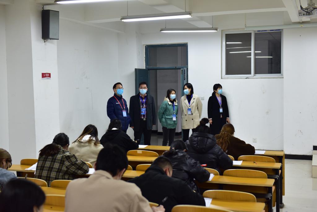 为保证此次考试工作顺利进行,按照疫情防控工作部署要求,学院准备若干通风良好的教室若干作为笔试考场和技能测试考场,同时设置位置相对独立,通风良好的备用考场。所有考生进入校园必须佩戴口罩、体温正常,并提供当日健康绿码。笔试、面试时,考生、监考教师须全程戴口罩。 所有考场严格按照要求布置,设置了考场分布图、警戒线、通道及考场指示牌,所有监考及工作人员持证入场。考场秩序有条不紊,考生认真答题,考风严谨,各工作小组紧密配合,协调联动,监考老师认真负责,确保了此次考试规范、有序地进行;试卷由纪检、保卫等专人押运看管试题,全程在录像下进行,承接有序,无一疏漏,保证考试的顺利进行;所有考生技能测试成绩均当场告知学生,保证考试的公平、公正、公开。学院纪检监察人员全程参与监督工作,确保考试的组织严密性。