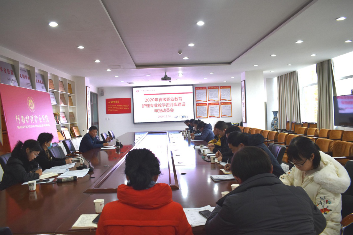 12月4日,我院在第一会议室召开2020年省级职业教育护理专业教学资源库建设申报动员会,对资源库建设工作进行部署。郭茂华院长出席会议,党委办公室、院长办公室、财务处、教务处、信息中心负责人及护理系各教研室主任,安阳地区医院科教科申小梅主任参会,会议由护理系何敏主任主持。