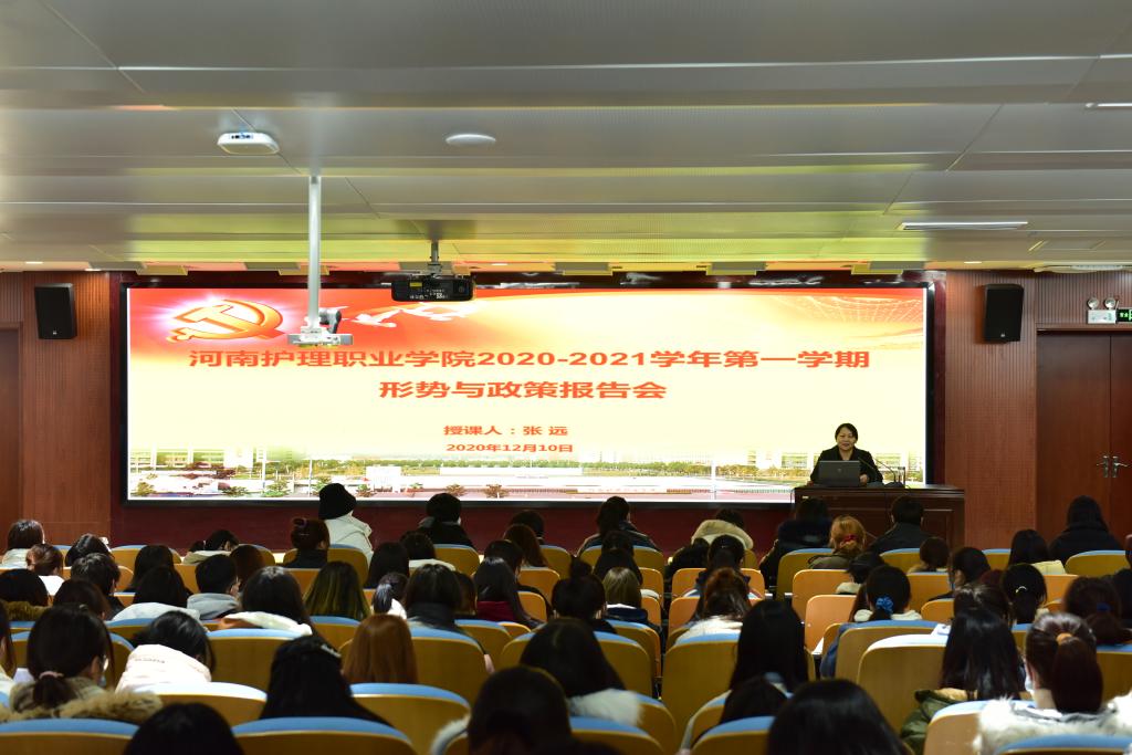 12月10日上午,我院2020-2021学年第一学期“形势与政策专题讲座”在学术报告厅一楼举行,20级大专护理、口腔医学技术专业部分学生和思政部教师代表共200余人现场聆听了此次报告。