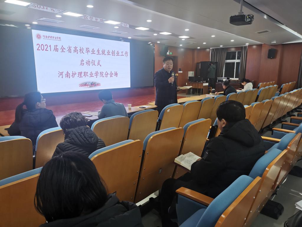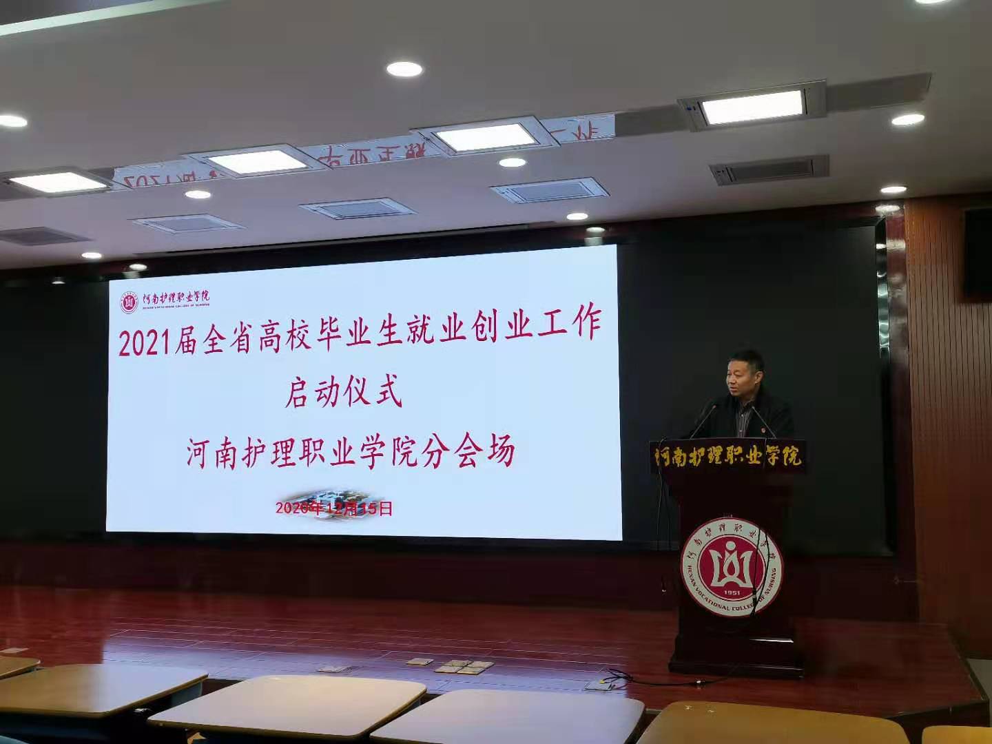 为深入贯彻党的十九届五中全会和2021届全国普通高校毕业生就业创业工作网络视频会议精神,总结2020年工作,分析形势,安排部署2021年高校毕业生就业创业工作,12月15日,省教育厅联合省发展改革委等部门在郑州举办2021年全省高校毕业生就业创业工作启动仪式。我院在学术报告厅一楼设置分会场,院长郭茂华、副院长王家桥出席会议,各部门负责人及2021届毕业班辅导员参加会议。