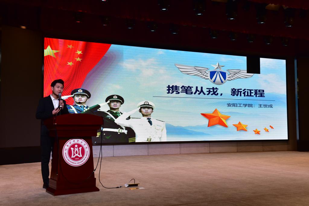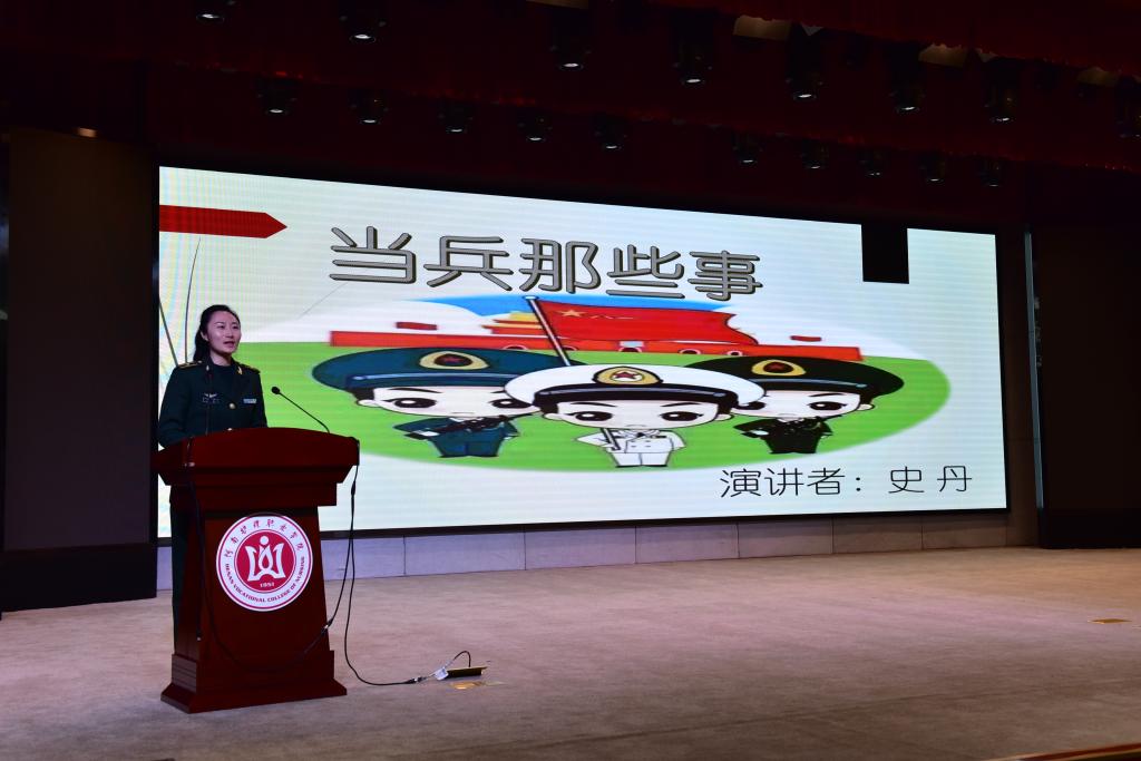同时,上午十点,征兵宣讲会在学术报告厅举行,在热烈的掌声中拉开帷幕。宣讲团成员有的是退伍老兵,有的是现役军官,有的是从事国防教育的老师。他们从不同的侧面、不同的角度、不同的理解表达着共同的信念:投身军营、助力国防,胸怀家国,携笔从戎。