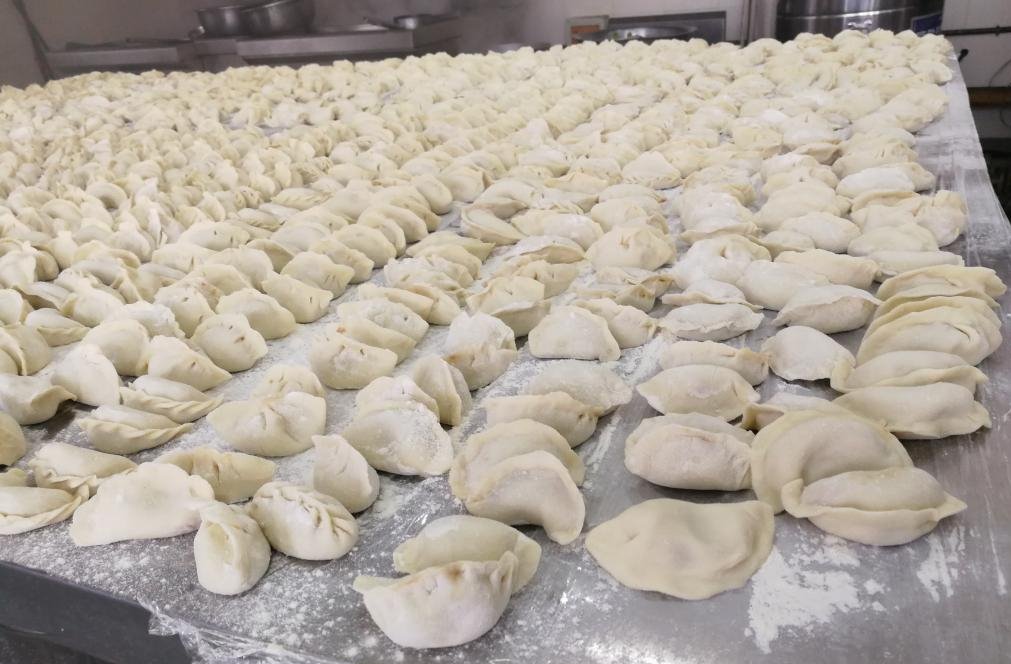 大家齐心协力,一个个饺子等待下锅