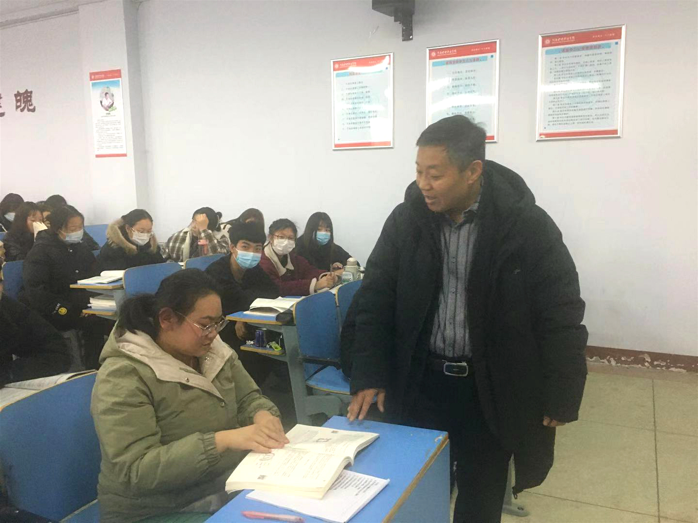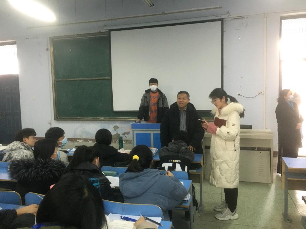 在农村医学院,郭院长一行深入课堂教学与师生亲切交谈,慰问并详细了解师生期末教学、复习备考、生活学习等方面情况,随后郭院长在农村医学院会议室组织召开座谈会,针对检查情况,他要求一要进一步健全农村医学专业班级管理组织,增强学生的自我管理意识和能力;二要统筹安排农村医学院的期末教学工作,强化集中辅导,做好期末考试各项考务准备,确保农村医学专业的人才培养质量;三是做好校园安全及寒假期间安全管理,特别要加强寒假期间学生教育管理,确保学生度过一个欢乐和谐的假期。