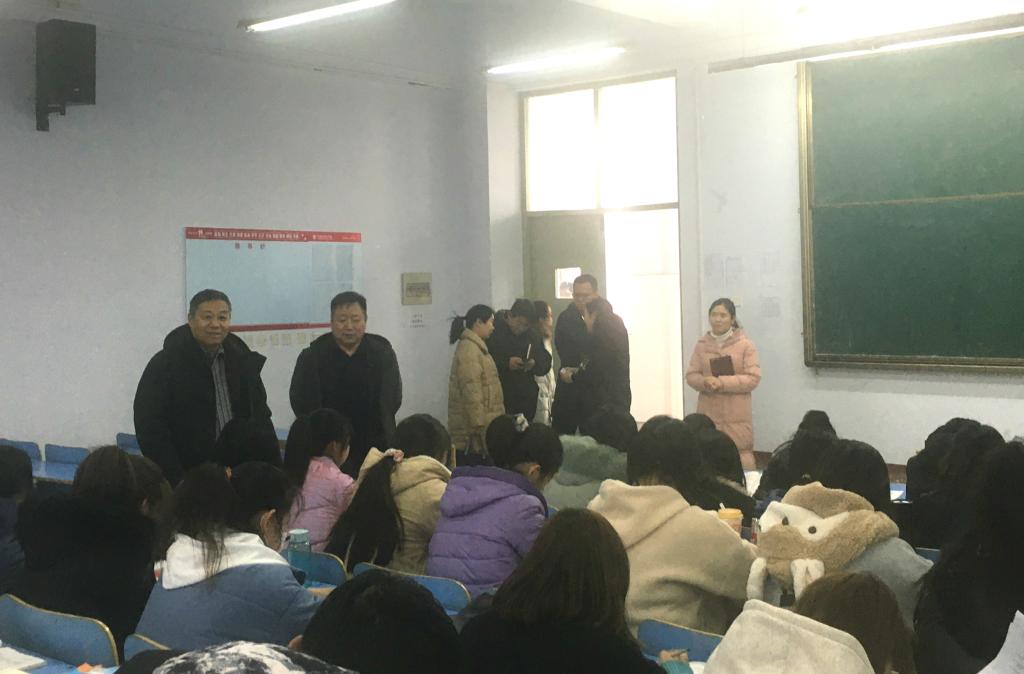 12月22日下午,院长郭茂华带队到鹤壁校区我院农村医学院就学生期末教学和日常管理工作进行深入调研,副院长王家桥、学院办公室、护理系、临床医学系等相关部门负责同志陪同调研。