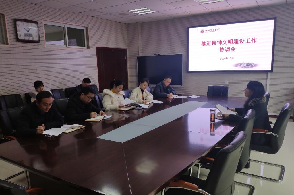 根据安阳市盘庚街办事处创卫工作通知要求,为了推进精神文明建设工作,12月23日上午,我院在第一会议室召开推进精神文明建设工作协调会。纪委书记张远出席,学院精神文明建设领导小组办公室副主任、各工作组组长,院长办公室、文明办等相关部门工作人员参加会议。