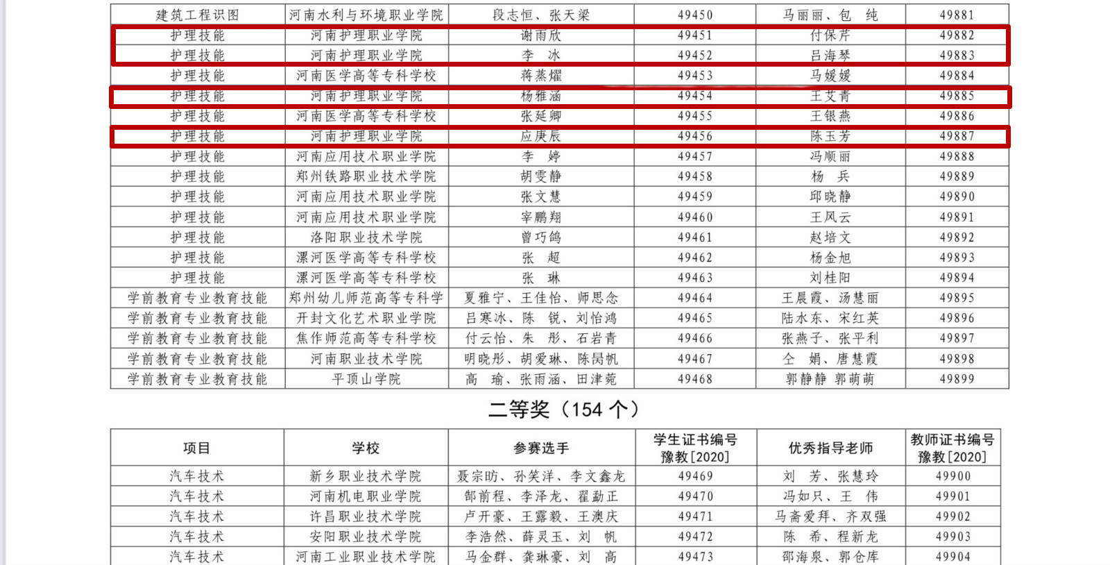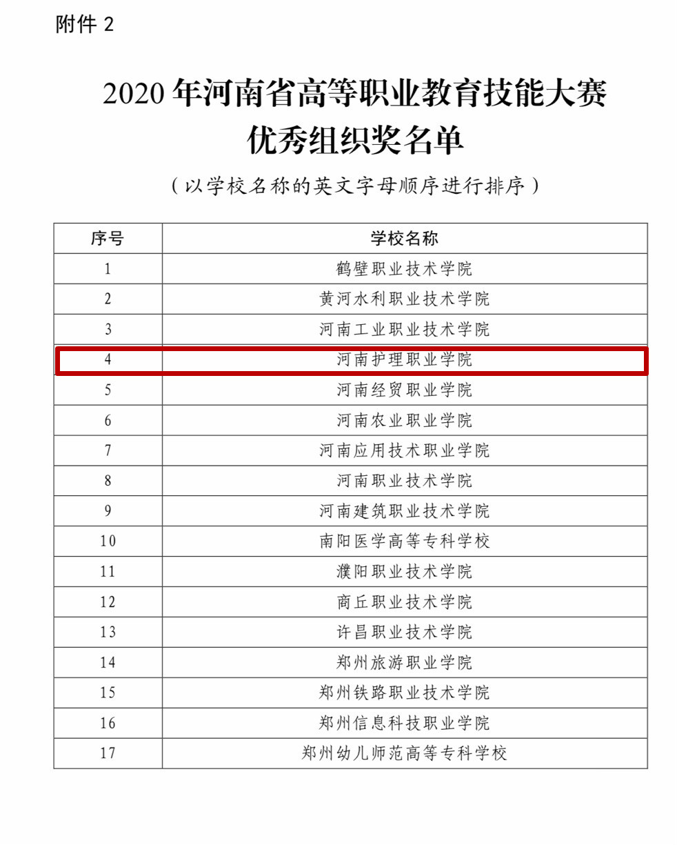 近日,由河南省教育厅举办的2020年河南省高等职业教育技能大赛圆满落下帷幕。我院谢雨欣、李冰、杨雅涵、应庚辰四位同学获得“护理技能”赛项一等奖,张梦迪、董蕾、陈文金同学获得“健康与社会照护”赛项一等奖,崔妍婷同学获得“健康与社会照护”赛项二等奖的好成绩。我院荣获优秀组织奖。