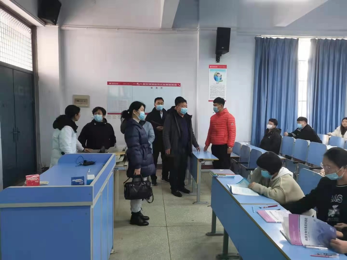 为全面掌握新学期开学教学开展情况,保证新学期教学工作顺利进行,3月1日上午8点,院领导杜天信、郭茂华、钟会亮、王家桥、张远带领相关职能部门负责同志,深入教学一线,对开学第一天疫情防控措施、师生到位情况、课堂教学秩序、教学设备运行、教室环境卫生等进行了全面细致的检查。