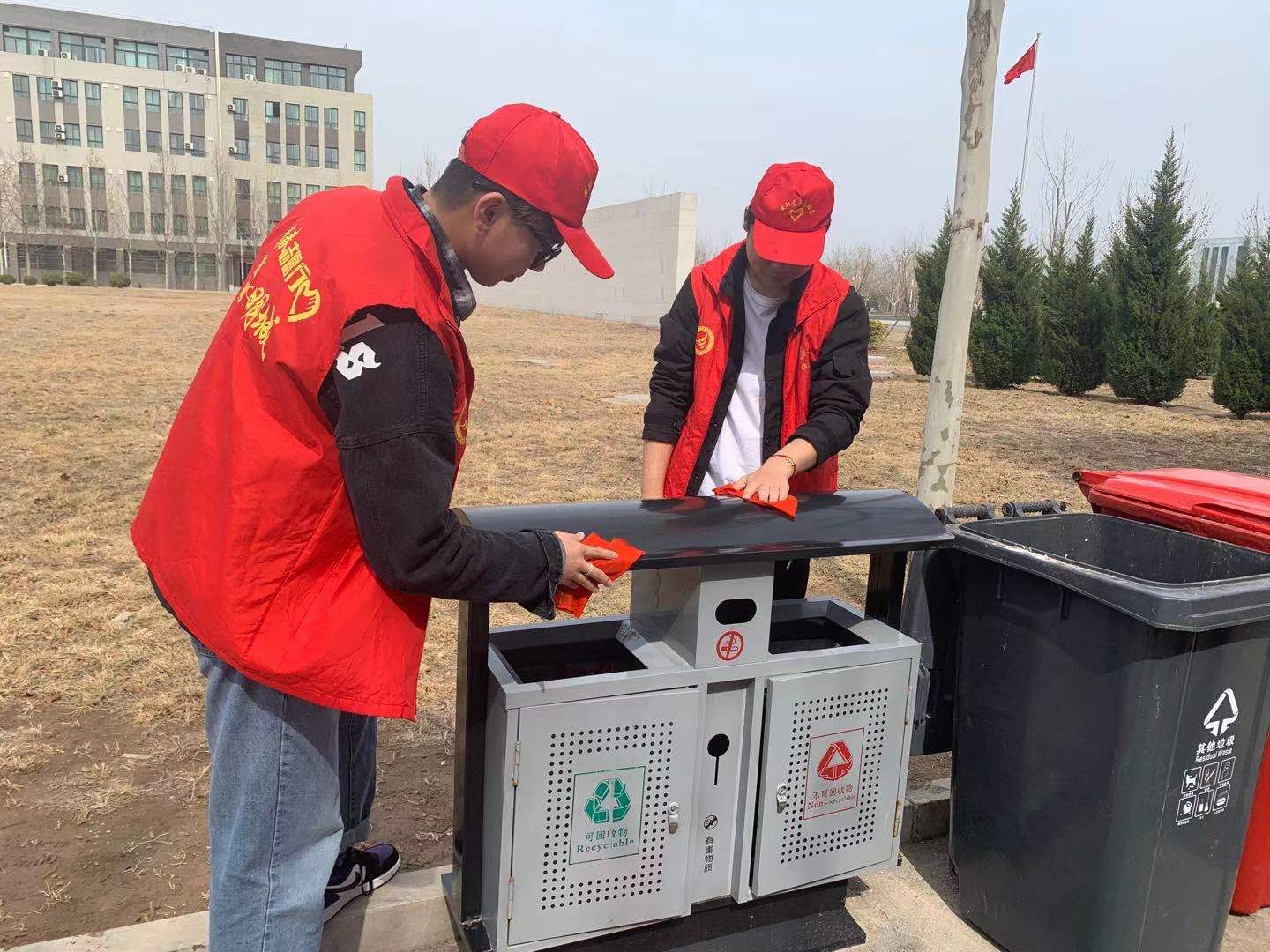 参加志愿服务的同学们主要对分布校园的垃圾桶、宣传栏进行清洁,捡拾绿化带中藏匿的垃圾。同学们身着红色马甲,不怕脏、不怕累,辛勤劳动,成为校园一道靓丽的风景线!