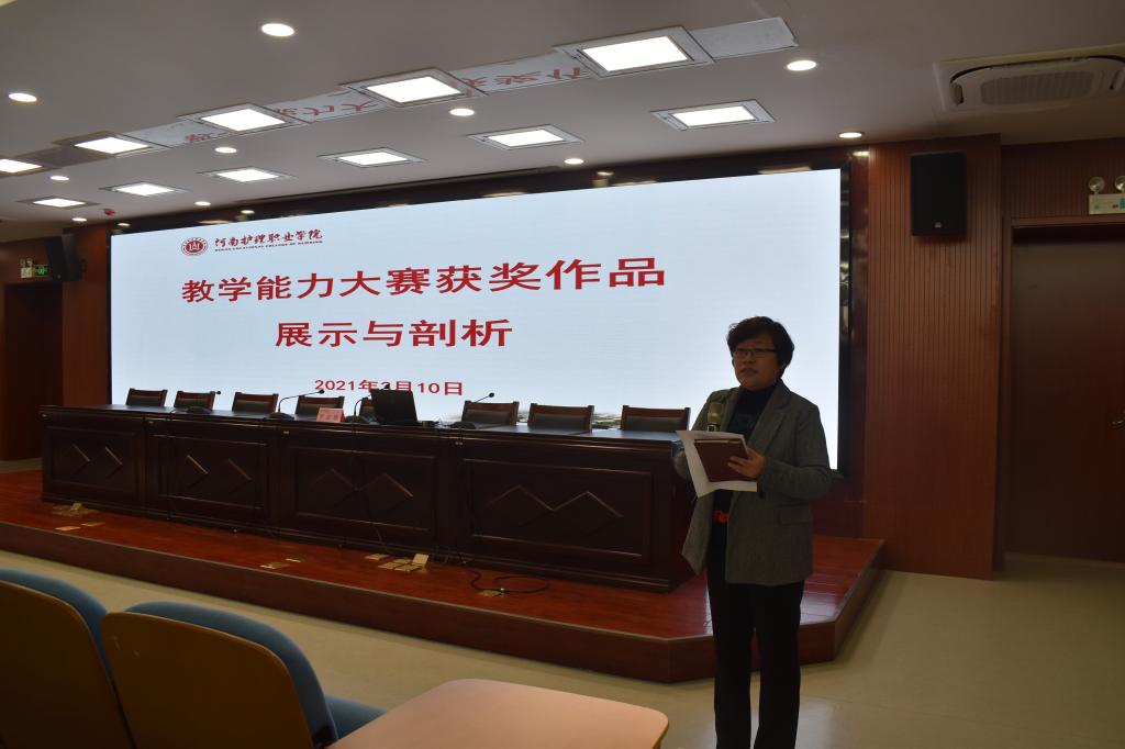 教学能力大赛是促进“三教”改革的重要平台,是提高职业院校教师教学质量的“助推器”,大赛注重教学团队建设和课程改革实效,并突出教学团队对教学自我诊断和改进能力考核。李金艳副教授分享了其教育教学改革和参加国家级教学能力比赛的经验做法,并分别对参赛作品的课程标准、教案、教学实施报告提出了具体的指导性意见,为全体教师提供了富有成效的指导。