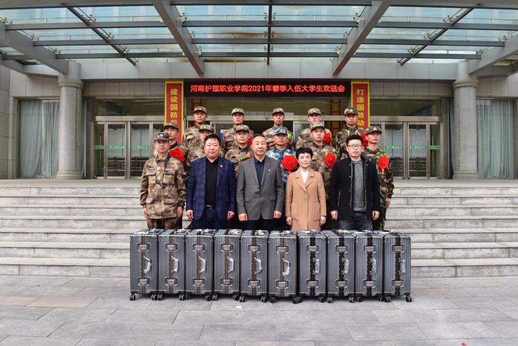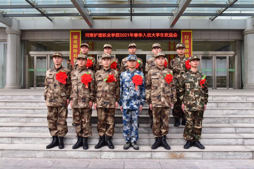 3月15日下午,在这春暖花开,万紫千红的季节,我院2021年大学生应征入伍学生即将踏上远方的征程,走向祖国的边防,守卫海疆,守护蓝天之际,学院在文峰区武装部召开大学生入伍欢送会,11名身披戎装、胸戴红花的大学生士兵参加。党委书记杜天信、副院长王家桥出席并讲话,武装部工作人员参加。