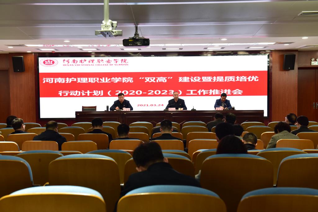 为进一步贯彻落实《国家职业教育改革实施方案》和《职业教育提质培优行动计划(2020-2023年)》文件精神,3月24日下午,我院在学术报告厅一楼召开“双高”建设暨提质培优行动计划(2020-2023)工作推进会。学院领导杜天信、郭茂华、王家桥出席会议,副科级以上干部、各责任部门双高建设负责干事、全体教研室主任参加会议。会议由副院长王家桥主持。
