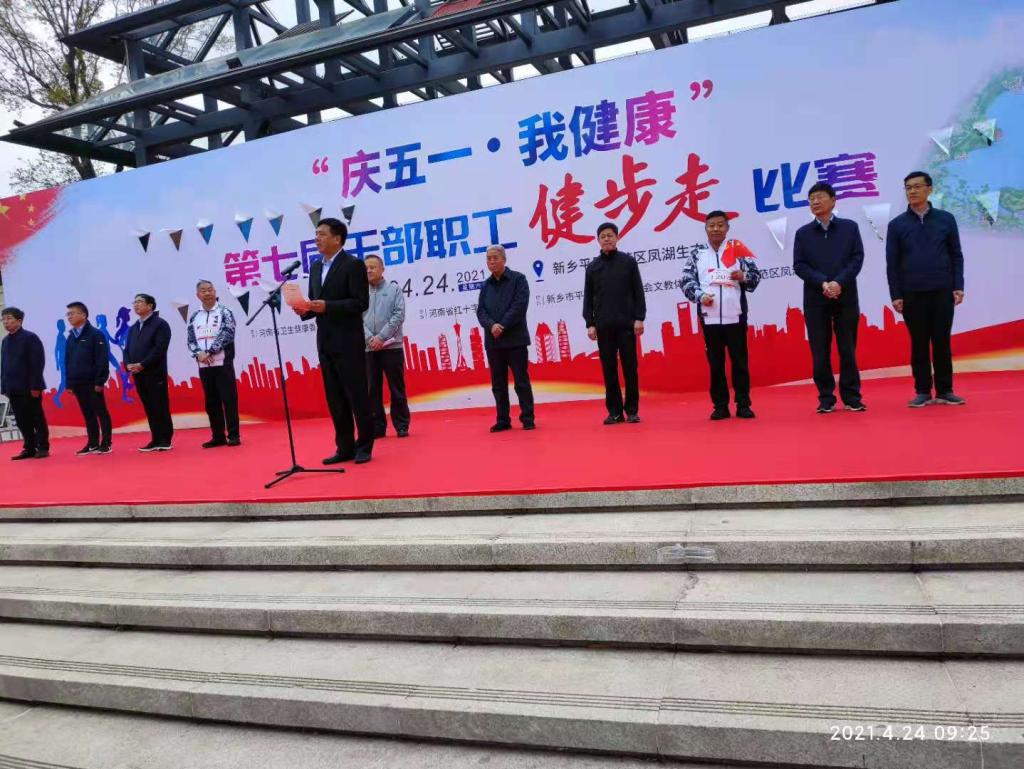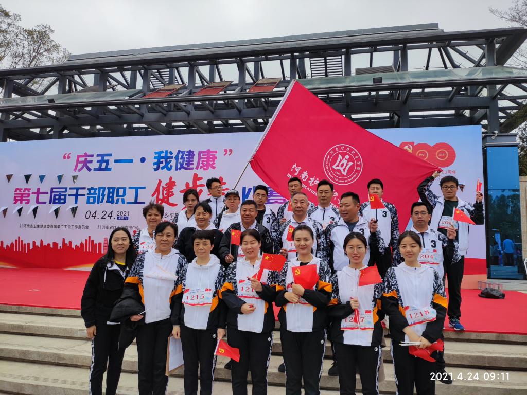为庆祝中国共产党成立100周年,弘扬五一国际劳动精神,引导干部职工养成健康文明的生活方式。4月24日,河南省卫生健康委第七届“庆五一、我健康”干部职工健步走比赛在新乡平原示范区凤湖生态公园举行。我院由院领导杜天信、郭茂华、王家桥、张远及其他干部职工共计20人组成的代表队在此次活动荣获佳绩。