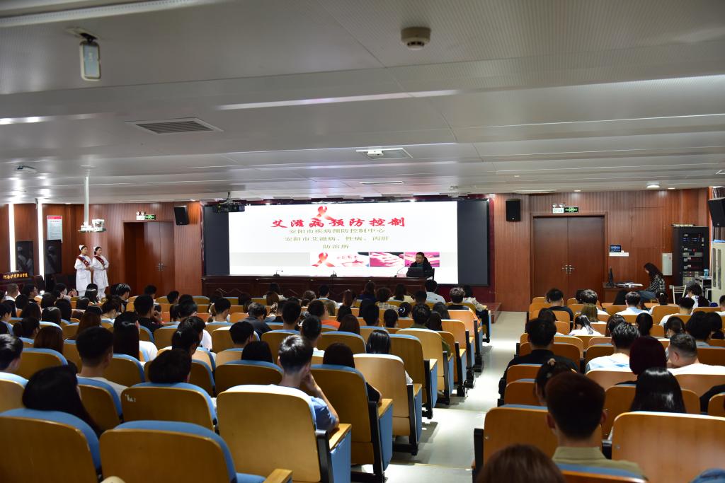 安阳市疾控中心专家刘龙医师从艾滋病的发生到传播途径,艾滋病的危害到艾滋病预防控制,如何侵入“象牙塔”到如何提高防艾意识,语言妙趣横生,生动风趣,并设置了问答环节,让更多青年学生正视艾滋病,呼吁关爱艾滋病病人、不歧视不隐瞒,珍爱生命,远离艾滋。随后我院青年志愿者协会工作人员为现场学生发放了防艾宣传品。