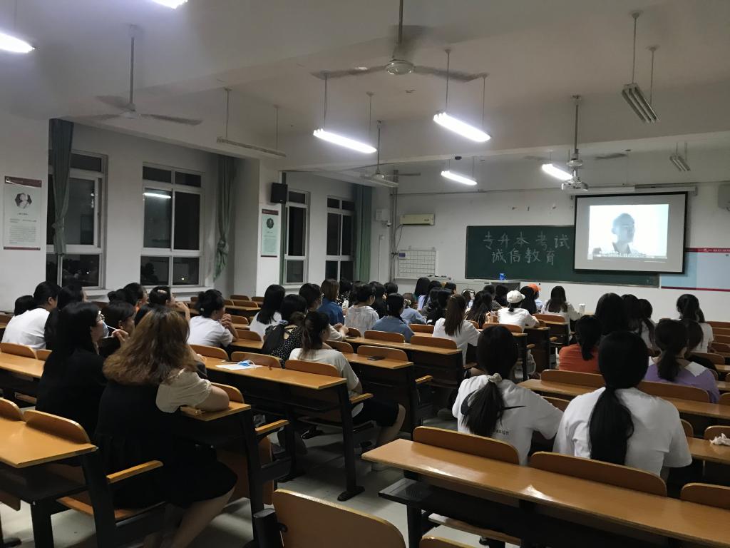 自专升本考试报名以来,我院利用主题班会、校园网、微信公众号、楼宇大屏幕等载体,向考生宣传《中华人民共和国教育法》《刑法修正案(九)》《国家教育考试违规处理办法》,播放诚信考试警示宣传片,组织考生签订考试诚信承诺书及《致2021年高考考生的一封信》,多渠道开展诚信教育宣传活动,增强了考生的法律意识和诚信意识,提高守法、守规的自觉性,营造诚信考试的校园文化氛围。