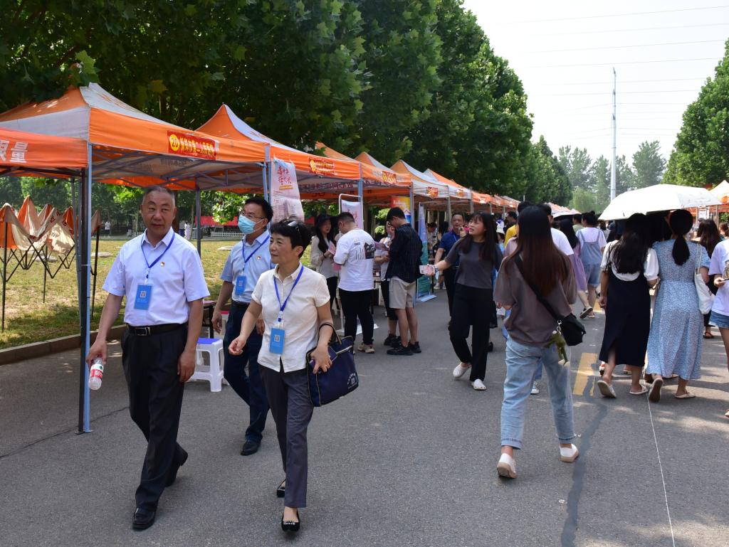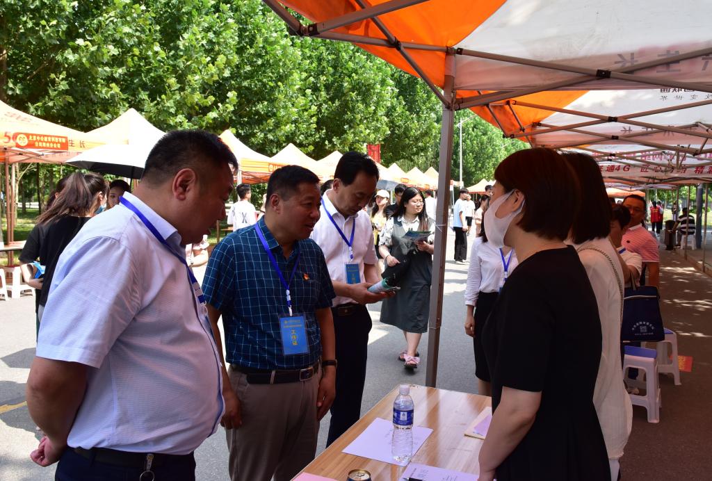 6月11日,我院2021年毕业生就业双向选择洽谈会在学院励志路顺利举行。院领导杜天信、郭茂华、王家桥、钟会亮前往现场检查指导就业双选洽谈会工作,并与参会单位、应聘学生进行亲切交谈。