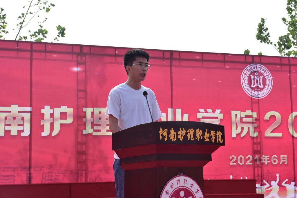 毕业生代表刘朋代表2021届全体毕业生向母校表示最衷心的感谢和最崇高的敬意!他表示将以最饱满的热情去勇敢地面对各种挑战,无论走到哪里,永远都会记得是河护人,不忘学院的教诲,用最豪迈最稳重的步伐朝着美好的未来努力前进。