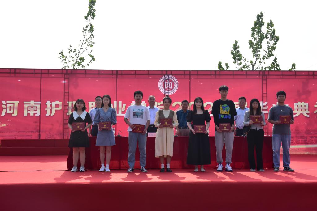 学院领导依次为荣获2021年河南省优秀大专毕业生和2021届毕业生代表颁发证书