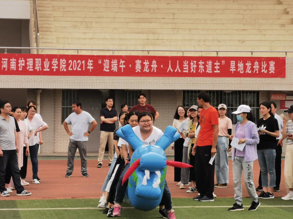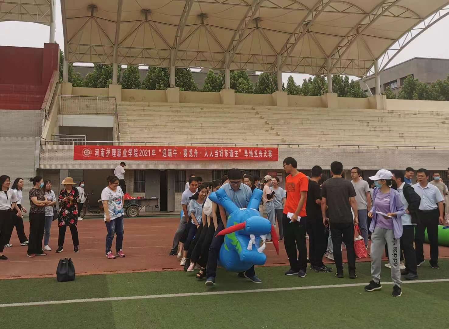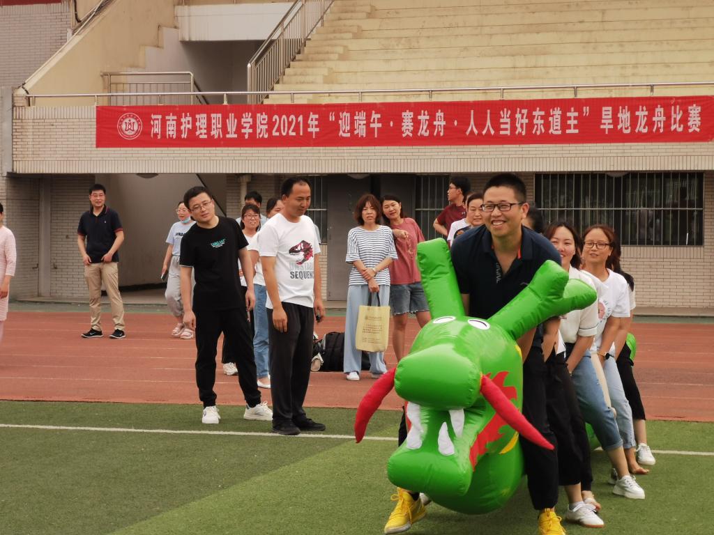 6月10日下午,学院运动场上,一场别开生面的旱地龙舟趣味赛正在火热进行中。此次比赛共有来自10个分工会的23支队伍、160多人参加比赛。赛龙舟是中国端午节的习俗之一,旱地龙舟,顾名思义,就是在陆地上进行的划龙舟比赛,也是中国部分地区端午节最重要的节日民俗活动之一。划龙舟的选手们7人一组,跨在龙舟上,比赛一开始,龙舟就如离弦之箭驶出起点,跨在龙头的选手负责喊号助威,伴随“一二、一二”“左右、左右”的口号,选手们用脚控制龙舟的行进方向,按口号节奏在旱地上整齐划一地“划船”,“夹着”龙舟奋勇前进。比赛结束后,现场的教职工纷纷表示:“旱地龙舟赛太有创意了,大家齐心协力向前冲的感觉太好了。这种活动既能锻炼身体又能增强协作能力,还能促进同事之间的相互理解。”