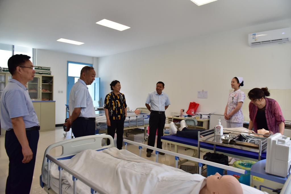 6月16日上午,院领导杜天信、郭茂华、钟会亮、张远一行到护理实训室看望即将参加全国护理技能大赛的选手和指导教师。