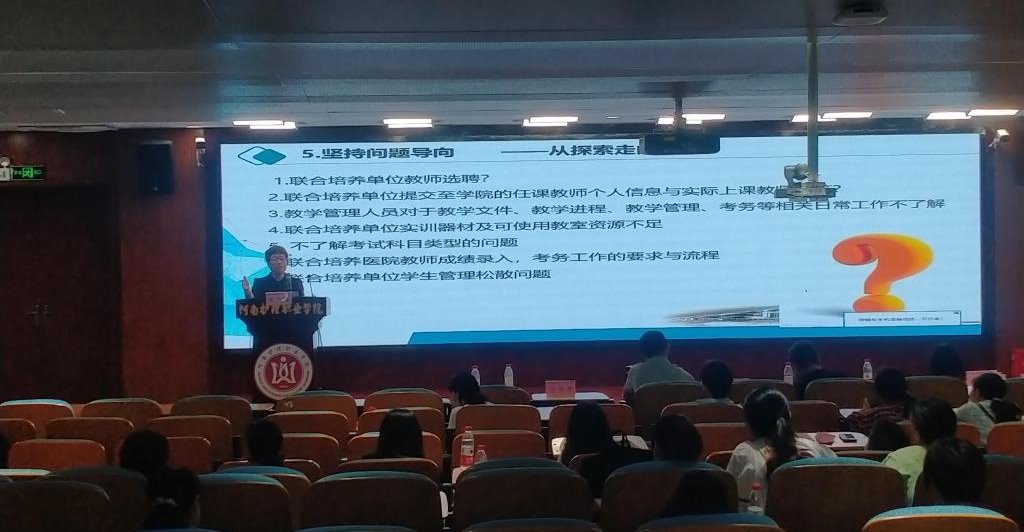 此次培训班特意邀请了滑县人民医院副院长吕绍江、河南宏力医院护理部主管李丹慧分别为大家作联合培养医院典型发言,分享教学和管理经验。学院教务处处长朱秀敏、学生处副处长金志利、护理系主任何敏分别为大家作联合培养工作汇报,内科教研室副教授付平、外科教研室副教授董越娟、教务处吴睿老师也分别为各联合培养单位的老师们带来了丰富多彩且内容详实的教学技巧及经验交流,使全体与会者获益良多。