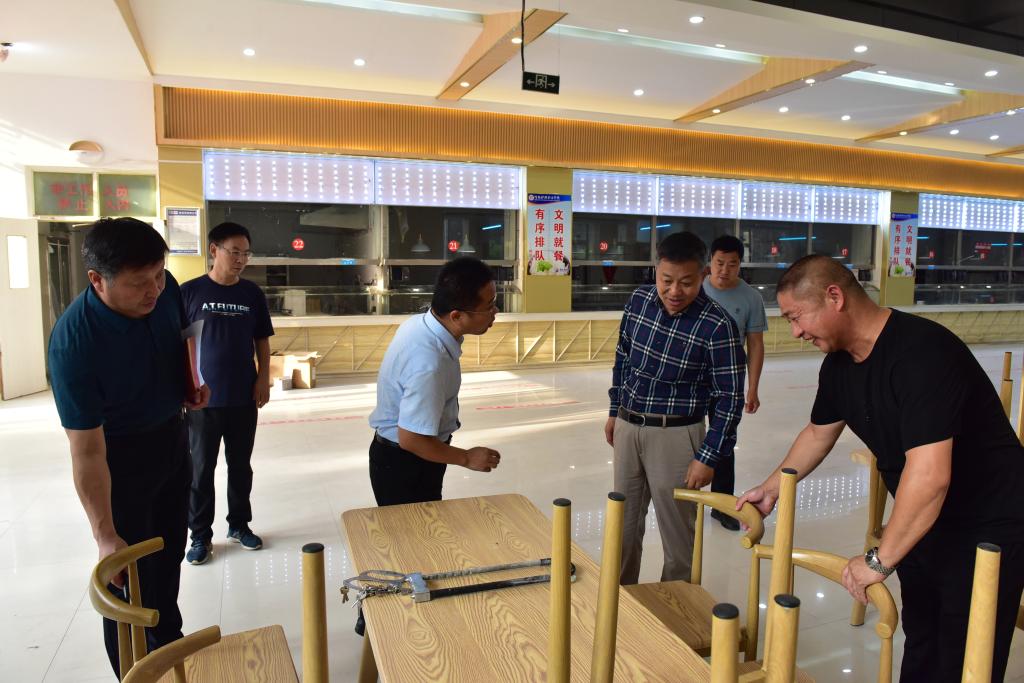 郭院长一行先后检查了学院餐厅、浴室、高压配电室等场所设施整修情况,详细了解了疫情防控工作落实是否到位、餐厅食材来源是否安全、采购桌椅质量是否牢靠、人脸识别支付功能是否便捷、浴室改造建设与使用情况是否完善等相关问题。