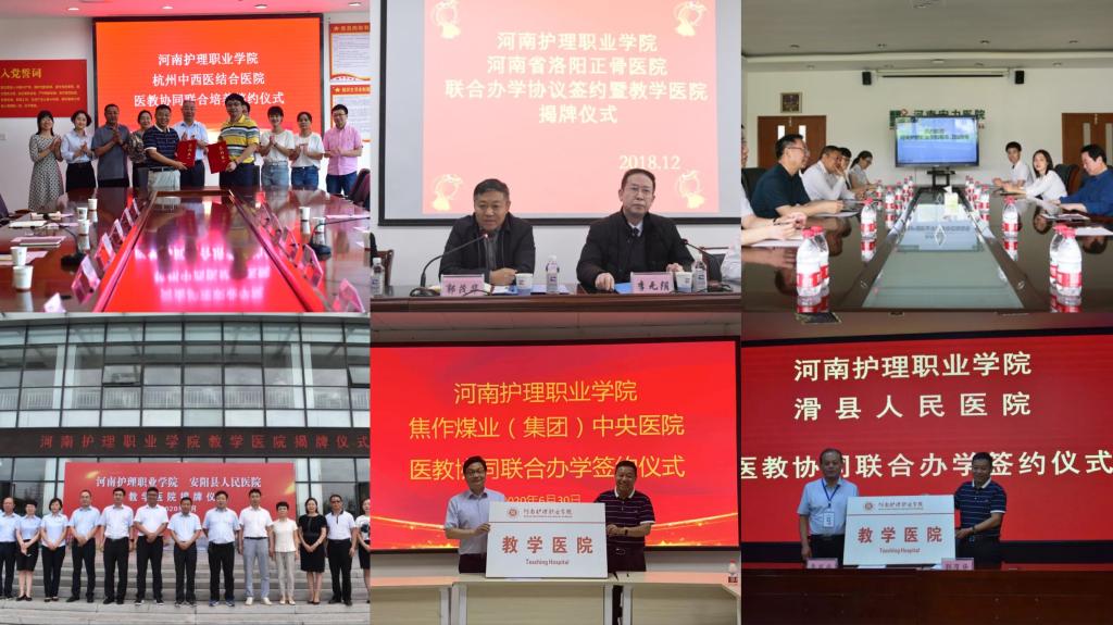 为进一步推进人才培养工作,近年来,学院聚焦“健康中国2030”“健康中原2030”等国家、省级战略,实施了校企共建共享,协同育人工程,先后同杭州市中西医结合医院、河南省洛阳正骨医院、河南宏力医院、安阳市人民医院等20多所省内外知名医院合作,牵头组建了“校企协同育人战略联盟”,成立了护理、助产、康复、影像等专业建设指导委员会和校企协同育人专家团队。