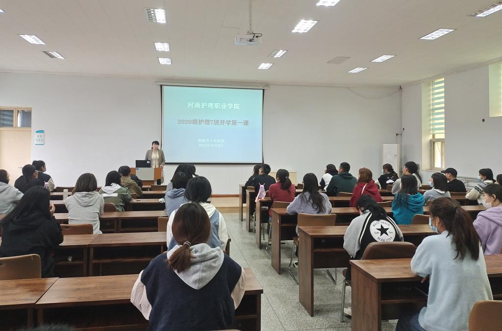 去到河南宏力医院的昝淑婷说:“来医院当天下着蒙蒙细雨,温度很低,医院的老师们一趟一趟地帮助我们运送行李。两位辅导员帮我们到处寻找纸箱让我们用来收纳,下午她们来到宿舍一间一间地巡视和慰问,帮助我们解决各种难题,真的很感动。来到这里第二天,医院给我们安排了开学典礼,医院的领导详细地为我们讲解联合培养的原因、目的以及医院的环境和文化,还为我们开设了丰富的课外活动课程,例如瑜伽课、形体课、武术课等。在这里的几日,老师们尽心尽力,毫无保留地为我们讲解、分析、纠正。很感谢这次来之不易的机会,在这里我们可以更好地将理论与实践相结合,为之后的护理工作奠定基础。在未来的一学年中我们将以积极主动的学习态度,掌握扎实牢固的操作技能及丰富深厚的理论知识,为未来的护理事业做出贡献。感谢学校,感谢河南宏力医院!”