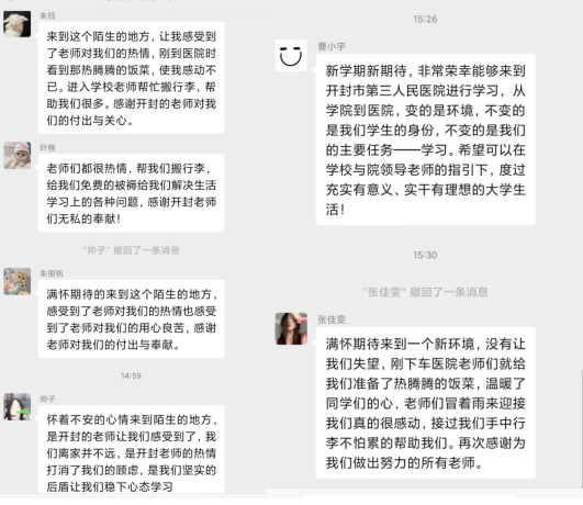 “你们的付出,我们都看得见,谢谢谢老师们,你们辛苦了。”同学们发自肺腑的说。联合培养单位开封三院领导老师们的用心付出,在河护学子一声声感谢中得到肯定,同学们都铭记于心。