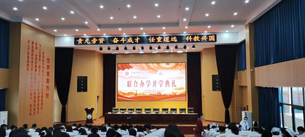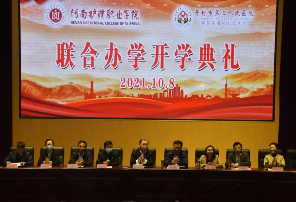 10月8日、9日我院与开封市第三人民医院、鲁山县人民医院分别举行联合办学开学典礼。鲁山县政协副主席闫同来、鲁山县卫生健康委主任匡晨阳,鲁山县人民医院院长温玉珍,开封市第三人民医院党总支书记、院长杨长松、副院长张会利、石守道、张海燕等两所医院相关领导及我院副院长王家桥、护理系主任何敏、护理系党总支书记王昆仑分别在两地出席开学典礼,我院2020级护理专业学生260余人参加典礼。这是我院进一步扎实推进校企合作、深化产教融合,实现校企协同育人,提升学院办学实力的又一有力举措。