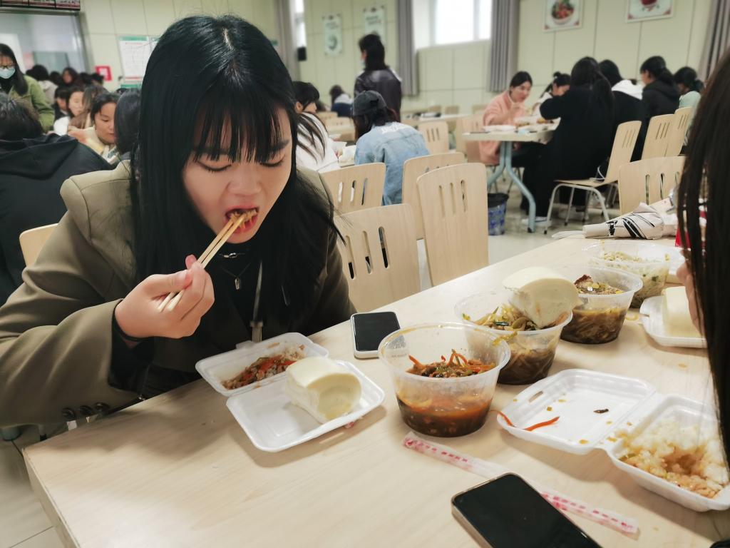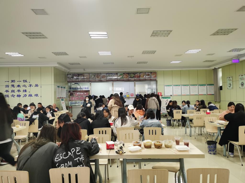 学生在开封市第三人民医院餐厅就餐