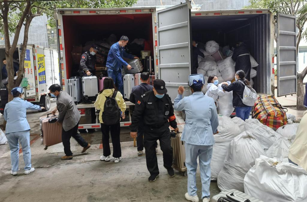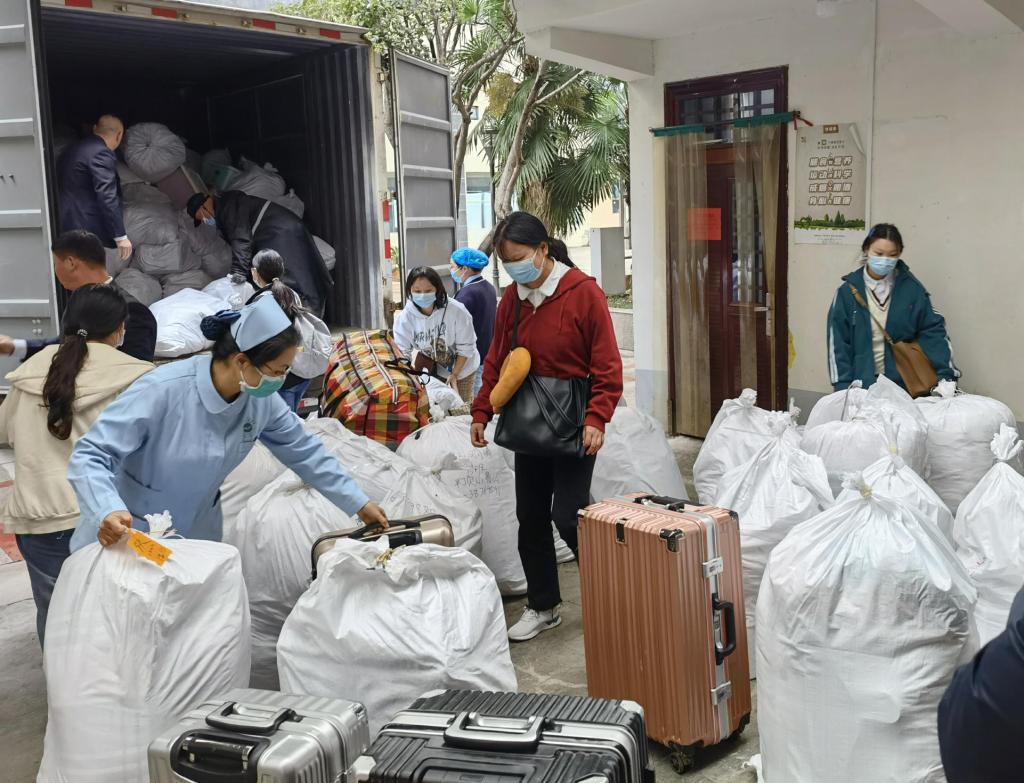 开封市第三人民医院医护人员帮助学生搬运行李