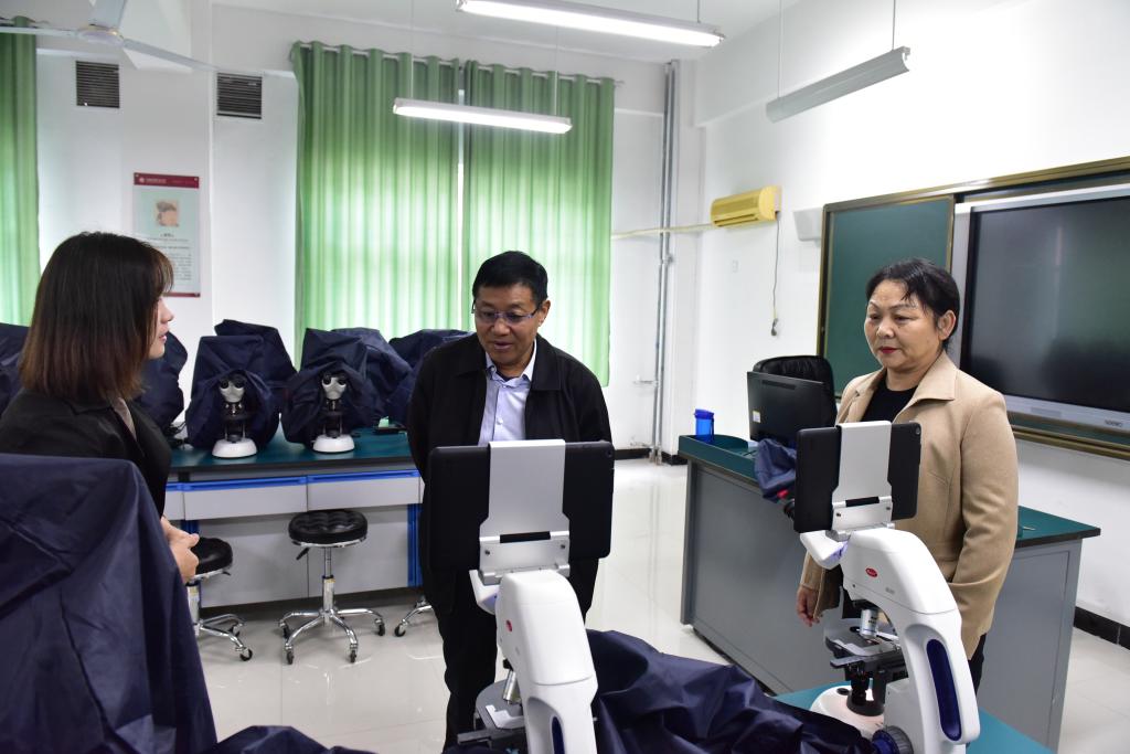 郭院长在检查实训室时强调,要坚持实验设备“开放、共享”的理念,仪器设备要用到每一位学生身上,坚决杜绝设备只买不用,要让河护的每一位学子享受学院发展成果,把立德树人理念落到实处。